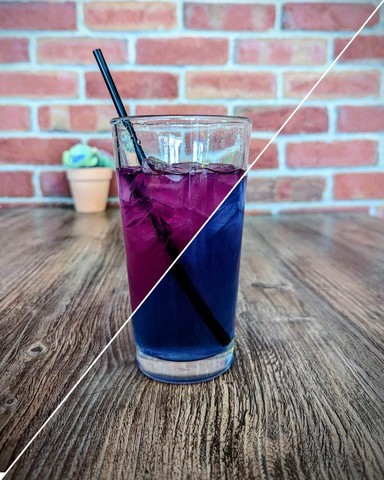 Organic Butterfly Tea, sweetened with organic agave, served with lemons on the side.