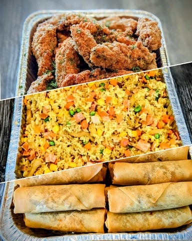 Fried rice, portobello tenders, egg rolls, you name it! Call us to order a custom tray. Pricing varies.